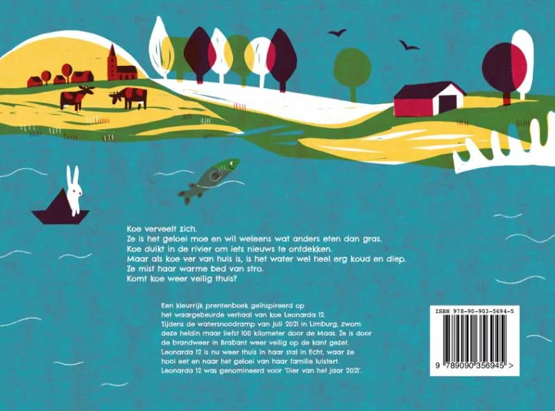 Koe Leonarda 12 raakte te water in juli 2021. Ze dreef vanuit het Limburgse Echt af naar Escharen in Brabant. Daar werd ze door de brandweer uit de Maas gehaald. Theatermaker Joes Boonen vond het zo’n bijzonder verhaal dat ze er in eigen beheer een kinderprentenboek van besloot te maken.