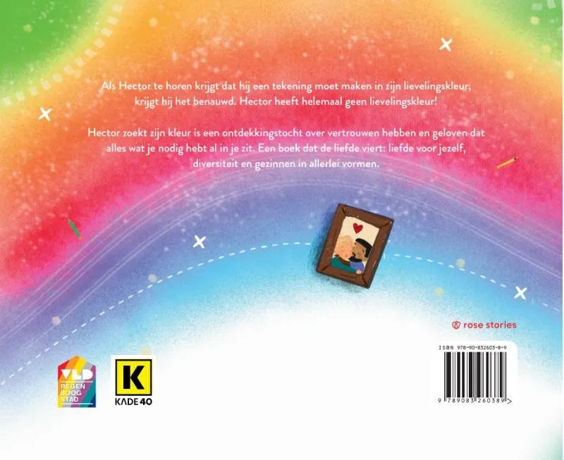 Hector zoekt zijn kleur is een ontdekkingstocht over vertrouwen hebben en geloven dat alles wat je nodig hebt al in je zit. Een boek dat de liefde viert: liefde voor jezelf, diversiteit en gezinnen in allerlei vormen.