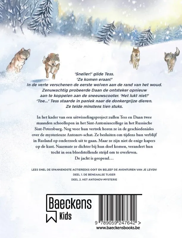 In het kader van een uitwisselingproject zullen Tess en Daan twee maanden schoollopen in het Sint-Antoniuscollege in het Russische Sint-Petersburg. Nog voor hun vertrek horen ze in de geschiedenisles over de mysterieuze Antonov-schat. Ze besluiten om tijdens hun verblijf in Rusland op onderzoek uit te gaan. Maar ze zijn niet de enige kapers op de kust. Naarmate ze dichter bij hun doel komen, verandert hun tocht in een bloedstollende strijd om te overleven. De jacht is geopend!