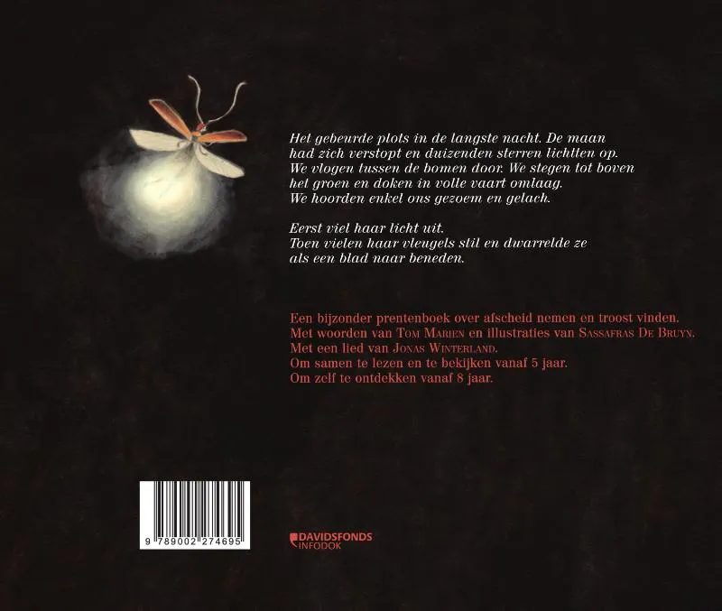 Het gebeurde plots in de langste nacht. De maan had zich verstopt en duizenden sterren lichtten op. We vlogen tussen de bomen door. We stegen tot boven het groen en doken in volle vaart omlaag. We hoorden enkel ons gezoem en gelach.