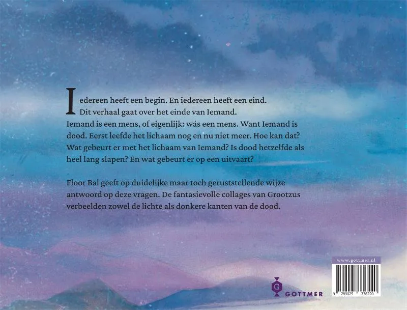 Floor Bal geeft op duidelijke maar toch geruststellende wijze antwoord op deze vragen. Haar tekst blijft feitelijk, maar heeft een ongekende warmte en genegenheid in zich. De illustraties van de Rotterdamse Grootzus zijn al even eigenzinnig. Met haar fantasievolle collages verbeeldt ze zowel de lichte als de donkere kanten van de dood met veel verve en kleur.