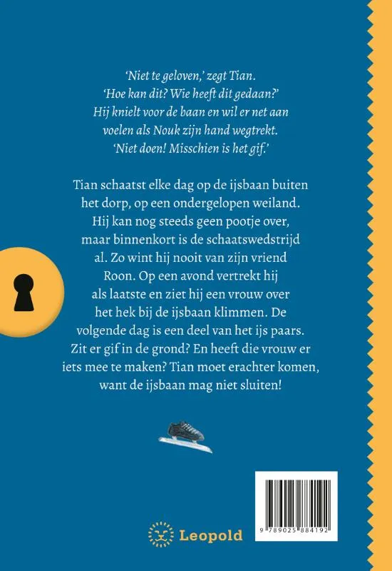 Tian schaatst elke middag en avond op de ijsbaan buiten het dorp, op een ondergelopen weiland. Hij hoopt dat het nog lang blijft vriezen, want binnenkort is de schaatswedstrijd al en hij kan nog steeds geen pootje over. Zo wint hij nooit van zijn vriend Roon. Op een avond vertrekt hij als laatste en ziet hij een vrouw over het hek bij de ijsbaan klimmen. De volgende dag is een deel van het ijs groen. Zit er gif in de grond? En wat