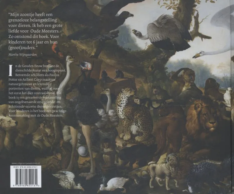 Het Grote Oude Meester Dierenboek is een prentenboek voor kinderen dat jonge kinderen de dieren leert kennen aan de hand van prachtige, voor een groot deel Nederlandse, meesterwerken. Voor het jonge publiek is het boek een eerste kennismaking met de ongekende schoonheid van de Oude Meesters. Het is een boek voor jonge kinderen die met hun eerste woordjes beginnen, voor oudere kinderen, die voor het eerst naar een museum zijn geweest, voor ouders, opa’s en oma’s, kunstliefhebbers en voor een ieder die zich wil laten betoveren door de schilderijen in het boek, die stuk voor stuk zijn uitgekozen op hun kwaliteit en kracht. De verzameling van vijfentwintig sprekende dierenportretten bevat zowel ‘hidden treasures’ uit privéverzamelingen als iconische beelden uit musea, zoals het Slapende Hondje door Gerard Dou, de Stier door Paulus Potter, de Dodo van Koning Edward door Roelant Saverij, en de Zebra door George Stubbs. Een groot aantal topstukken is in Nederlandse Musea in het echt te bewonderen.