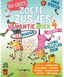 De vakantie is niet compleet zonder de Zoete Zusjes! Het grote Zoete Zusjes vakantieboek 4 van Hanneke de Zoete is een vrolijk geïllustreerd doeboek boordevol gloednieuwe knutsel- en tekenopdrachten, kleurplaten, testjes, puzzels en natuurlijk een lekker leesverhaal. Saar en Janna gaan deze zomer lekker veel sporten en bewegen en daarom staan er in dit boek extra veel spelletjes voor buiten én binnen. Maak de gekste kettingreactie, doe de grote sport & spelquiz, zet een spannende speurtocht uit en maak je eigen vlieger of kwartet. Met het grote Zoete Zusjes vakantieboek hoef je je deze zomer niet te vervelen!Bij dit boek hoort de superleuke Zoete Zusjes vakantiepodcast! Luister mee naar de vakantiedilemma’s, voorleesverhalen, weetjes en moppen van Saar, Janna en hun moeder Hanneke. Deze podcast is perfect voor onderweg, in de auto, het vliegtuig, de trein of op de boot! Maar ook voor op de camping, in het hotel of lekker thuis. Zoek in Spotify naar De Zoete Zusjes vakantiepodcast.