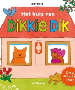 Krijg een rondleiding in ‘Het huis van Dikkie Dik’, een stevig kartonboek met schuifjes, draaischijven én een spiegeltje! Welkom in het huis van Dikkie Dik! Deze ondeugende kat is voor veel kinderen in Nederland en België een echte vriend, maar zijn knusse huis hebben veel mensen nog nooit van binnen gezien. Tijd voor een rondleiding! <br><br>Ga je mee op avontuur om alle kamers te verkennen? Kijk waar Dikkie Dik zich verstopt, snuffel rond in de keuken en ontdek wie er nog meer in huis wonen. Draai een wasje, trek de schuifjes tevoorschijn en klap een flapje open. Dit boek nodigt kinderen uit om spelenderwijs de wereld van Dikkie Dik te beleven. En als verrassing wacht er aan het eind een spiegeltje!<br><br>Jet Boeke maakte het eerste Dikkie Dik-verhaal in 1978, voor het televisieprogramma ‘Sesamstraat’. Sindsdien heeft de oranje kat de harten van peuters, kleuters en hun ouders gestolen en is hij niet meer weg te denken uit de Nederlandse cultuur. Van de boeken zijn inmiddels miljoenen exemplaren verkocht. <br><br>Dit Dikkie Dik-boekje is leuk om voor te lezen vanaf 2 jaar.