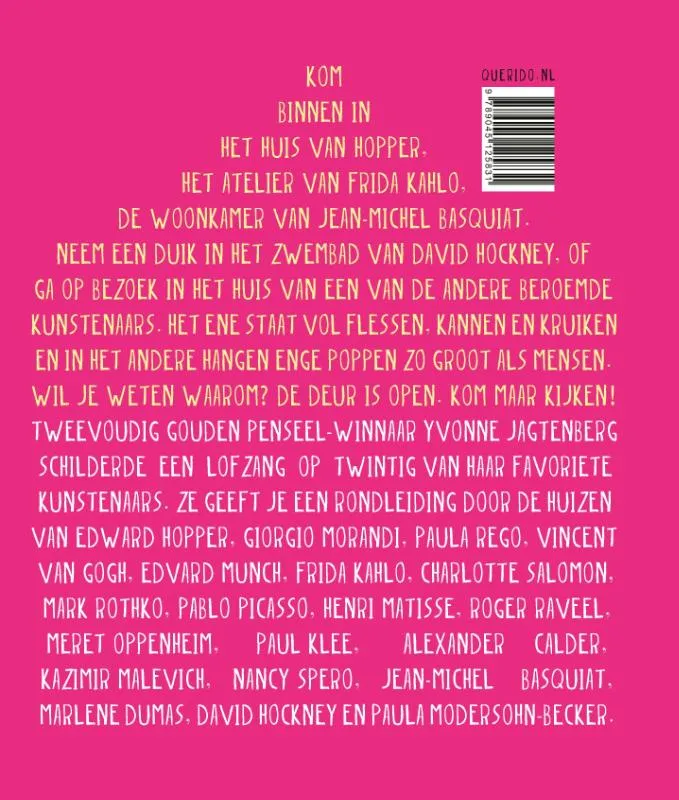 Tweevoudig Gouden Penseel-winnaar Yvonne Jagtenberg brengt in dit kunst-kijkboek een ode aan haar favoriete kunstenaars. En natuurlijk doet ze dat op een originele manier: door binnen te kijken in hun huizen. Hoe leefden ze daar? En met wie? Waar hielden ze van? En welke kunstwerken maakten ze er?
