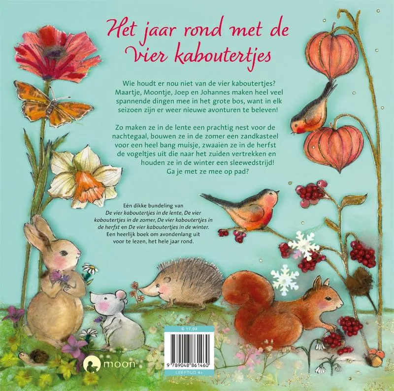 Wie houdt er nou niet van de vier kaboutertjes? Maartje, Moontje, Joep en Johannes maken heel veel spannende dingen mee in het grote bos. Elk seizoen zijn er weer nieuwe dingen te beleven. Ga je met ze mee op avontuur?<br><br>In dit boek zijn De vier kaboutertjes in de lente, De vier kaboutertjes in de zomer, De vier kaboutertjes in de herfst en De vier kaboutertjes in de winter gebundeld.