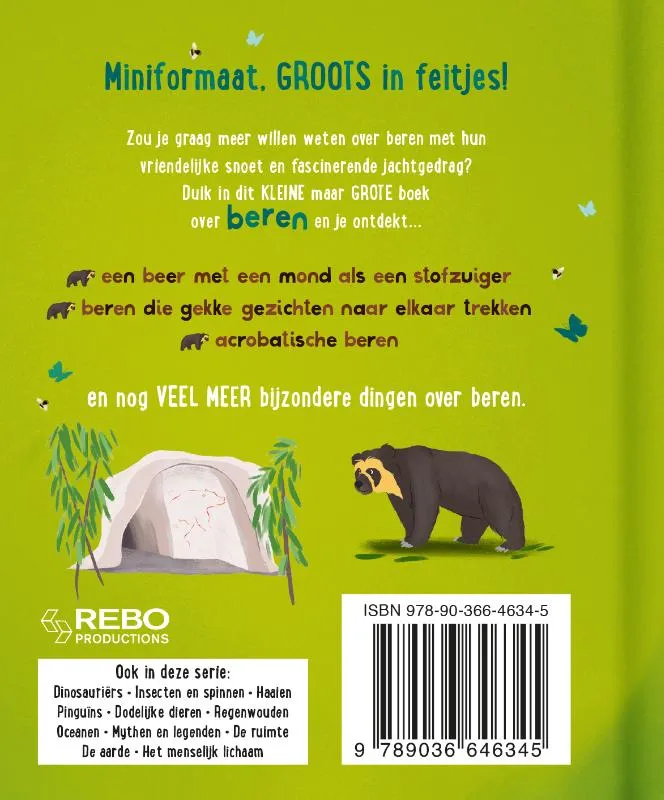 Zou je graag meer willen weten over beren met hun vriendelijke snoet en fascinerende jachtgedrag? Duik in dit kleine maar grote boek over beren en je ontdekt een beer met een mond als stofzuiger, beren die gekke gezichten naar elkaar trekken, acrobatische beren en nog veel meer bijzondere dingen over beren.
