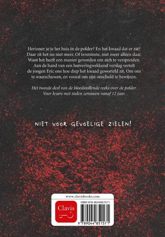 Herinner je je het huis in de polder? En het kwaad dat er zat? Daar zit het nu niet meer. Of tenminste, niet meer alléén daar. Want het heeft een manier gevonden om zich te verspreiden. Aan de hand van een huiveringwekkend verslag vertelt de jongen Eric ons hoe diep het kwaad geworteld zit. Om ons te waarschuwen, en vooral om zijn onschuld te bewijzen.