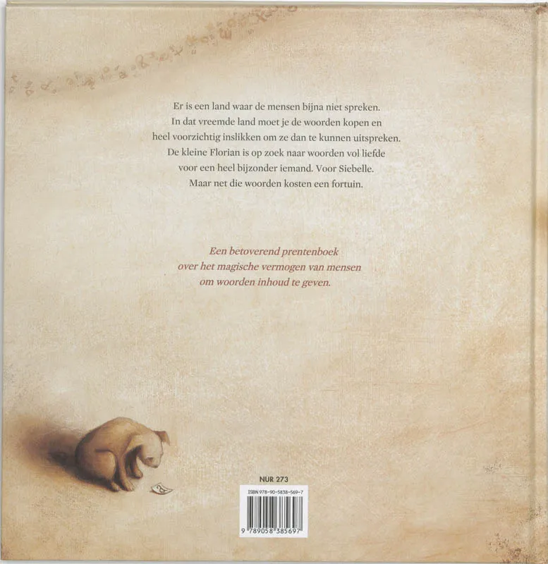 In het land van de woordfabriek moet je de woorden kopen, en daarvoor heb je veel geld nodig. Hoe kan Florian nu aan Siebelle duidelijk maken hoe onuitsprekelijk lief hij haar vindt? Prentenboek met geschilderde illustraties. Vanaf ca. 4 jaar.