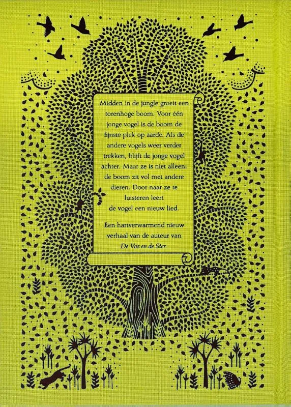 Midden in de jungle groeit een torenhoge boom. Elke zomer vangt de boom een zwerm vogels, die het droge seizoen zingend in zijn takken doorbrengen. Voor een jonge vogel is de boom de fijnste plek op aarde, elke tak is zo vertrouwd als haar eigen veren. Maar als de andere vogels weer verder trekken is de jonge vogel nog niet klaar de boom te verlaten. Ze blijft achter maar is niet alleen; de boom zit vol met andere dieren. Door naar hen te luisteren leert de vogel een nieuw lied.
