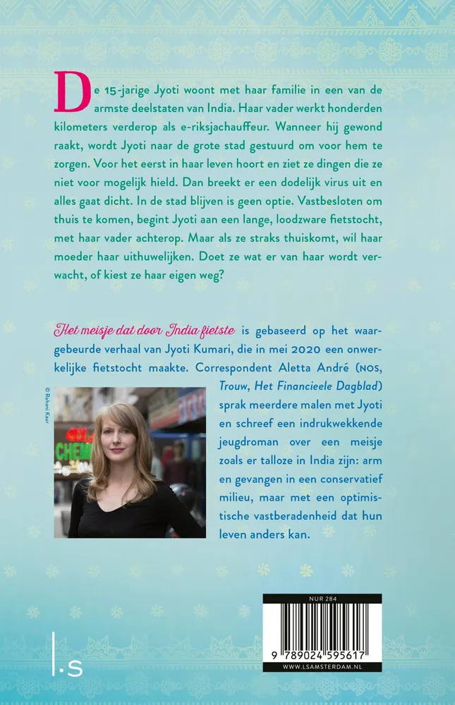 Journalist Aletta André was geraakt door het verhaal van Jyoti Kumari en schreef een aangrijpende jeugdroman over het meisje dat een onwerkelijke fietstocht maakte en iedereen over de hele wereld inspireerde. Tegelijk snijdt Aletta actuele thema’s aan als armoede, het kastesysteem en de positie van meisjes.