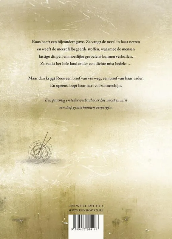 Roos heeft een bijzondere gave. Ze vangt de nevel in haar netten en weeft felbegeerde stoffen. Hiermee kunnen de mensen lastige ervaringen en moeilijke gevoelens verhullen. Zo raakt het hele land door een dichte mist bedekt … Maar dan krijgt Roos een brief van ver weg, een brief van haar vader. En opeens loopt haar hart vol zonneschijn.