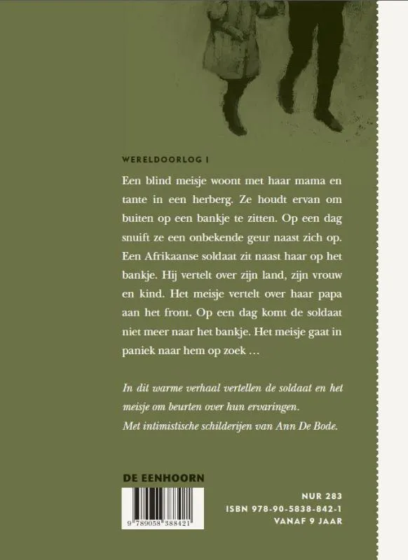 Een warme novelle over de vriendschap tussen een meisje en een soldaat. Beurtelings beschrijven de soldaat en het meisje hun ervaringen. Met intimistische illustraties die de verbeelding prikkelen.