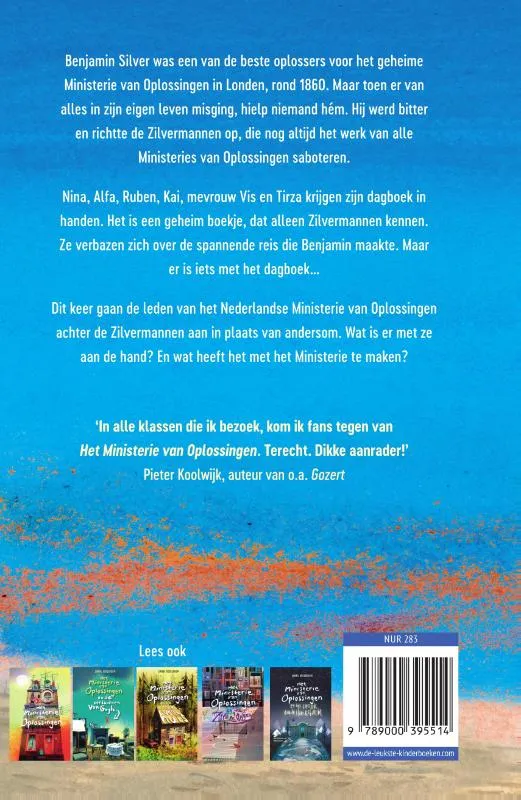 De leden van het Ministerie van Oplossingen krijgen het dagboek van Benjamin Silver in handen, de man die in de negentiende eeuw de Zilvermannen oprichtte, de grote vijand van het Ministerie. Het is een geheim boekje, dat alleen Zilvermannen kennen. Nina, Alfa, Ruben, Kai, mevrouw Vis en Tirza verbazen zich over de spannende reis die Benjamin maakte. Maar er is iets met het dagboek… Dit keer gaan de leden van het Nederlandse Ministerie van Oplossingen achter de Zilvermannen aan in plaats van andersom. Wat is er met ze aan de hand? En wat heeft het met het Ministerie te maken?