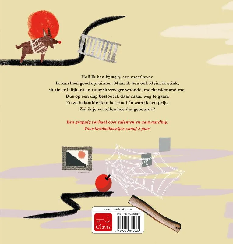 Hoi! Ik ben Ermest, een mestkever. Ik kan heel goed opruimen. Maar ik ben ook klein, ik stink, ik zie er lelijk uit en waar ik vroeger woonde, mocht niemand me. Dus op een dag besloot ik daar maar weg te gaan. Dat is hoe ik in het riool belandde en een prijs won. Zal ik je vertellen wat er daar gebeurde?