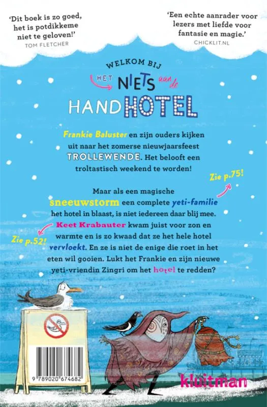 Welkom terug in Het niets aan de hand hotel, waar raar juist normaal is voor Frankie Banister en zijn ouders. Nadat de piepkleine koboldprins Krokbah vorige zomer het hele hotel op zijn kop zette, kijken Frankie en de magische gasten ernaar uit om nu te genieten van een heerlijke zorgeloze vakantie. Maar als een sneeuwstorm een complete yeti-familie het hotel in blaast en er steeds meer mysterieuze gasten aan komen waaien, merkt Frankie al snel dat er iets heel verdachts gaande is…