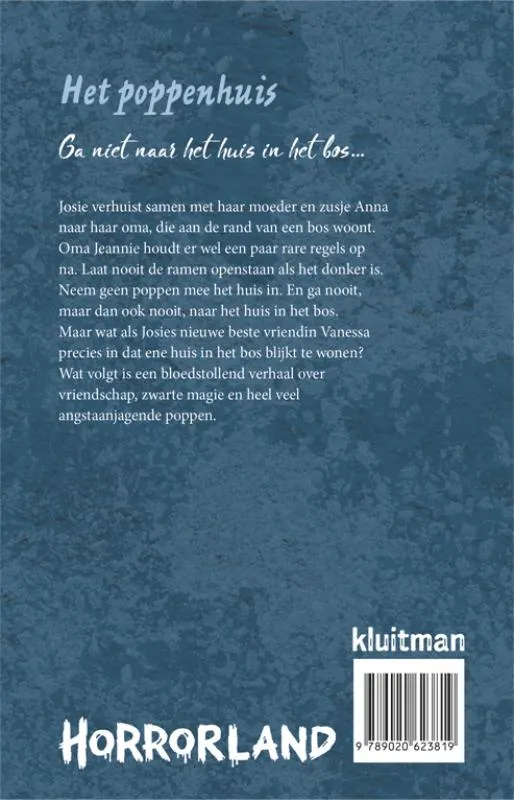 Josie (ik-persoon) verhuist naar haar oma die aan de rand van een bos woont. Ze krijgt nachtmerries over verminkte poppen. Wat betekent dat? En waarom mag Josie van oma nooit naar het huis in het bos? Vanaf ca. 10 jaar.