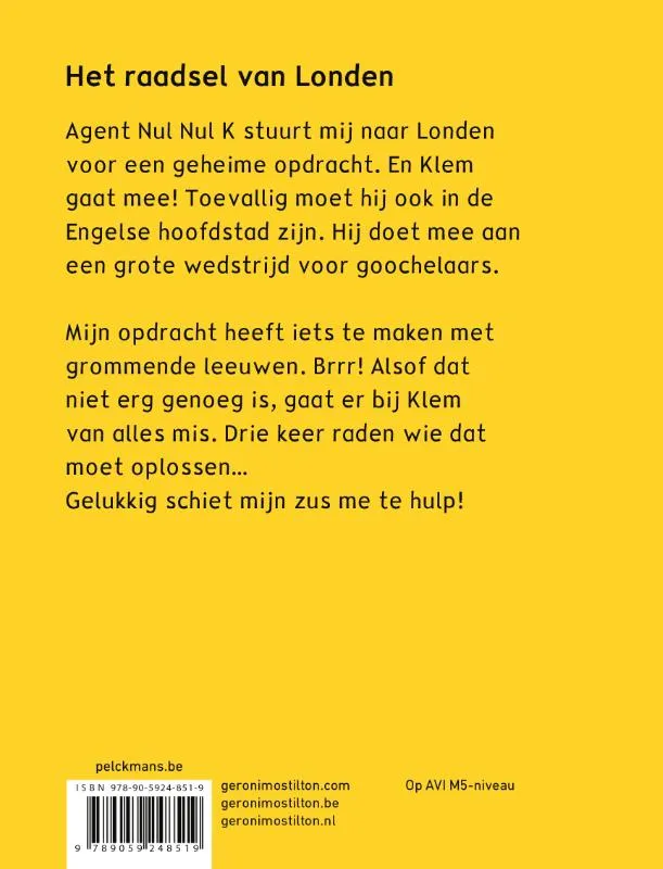 Agent Nul Nul K stuurde me naar Londen voor een geheime opdracht. En Klem ging mee! Toevallig moest hij ook in de Engelse hoofdstad zijn. Hij deed mee aan een grote wedstrijd voor goochelaars. Mijn opdracht had iets te maken met grommende leeuwen. Brrr! Alsof dat niet erg genoeg was, ging er bij Klem van alles mis. Drie keer raden wie dat moest oplossen … Gelukkig schoot mijn zus me te hulp. Anders was dit avontuur niet goed afgelopen voor mij …