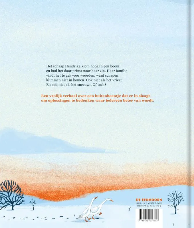 Het schaap Hendrika kruipt lekker in een boom. En maakt daar een knus nest voor zichzelf. De rest van de kudde begrijpt er niets van. ‘Wat doe je daarboven, Hendrika? Stel je niet zo aan en kom naar beneden.’ Maar misschien is het net wel een supergoed idee om in een boom te klimmen, zelfs voor een schaap?