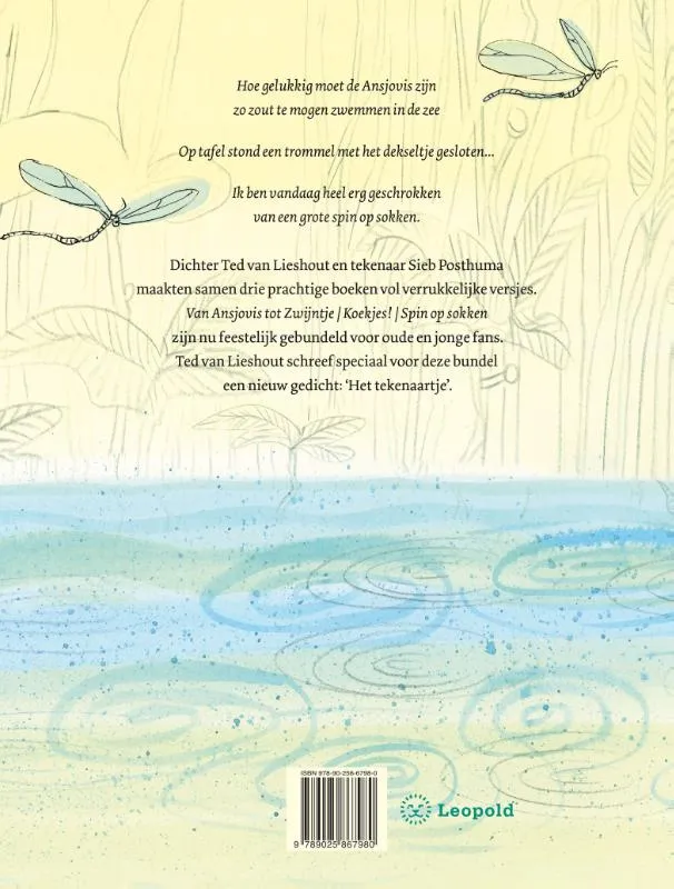 Dichter Ted van Lieshout en tekenaar Sieb Posthuma maakten samen drie prachtige boeken vol verrukkelijke versjes. Van Ansjovis tot Zwijntje / Koekjes! / Spin op sokken zijn nu feestelijk gebundeld voor oude en jonge fans. Ted van Lieshout schreef speciaal voor deze bundel een nieuw gedicht: ‘Het tekenaartje’.