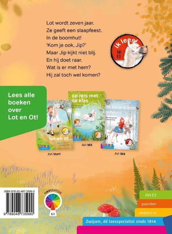 Beginnende lezers die gek zijn op dieren (en paarden in het bijzonder) halen hun hart op met dit boek over Lot en haar paard Ot. Het slaapfeest gaat over jarig zijn, feest vieren en de vriendschap tussen Lot en haar vriend Jip. Met prachtige illustraties van Ann De Bode.