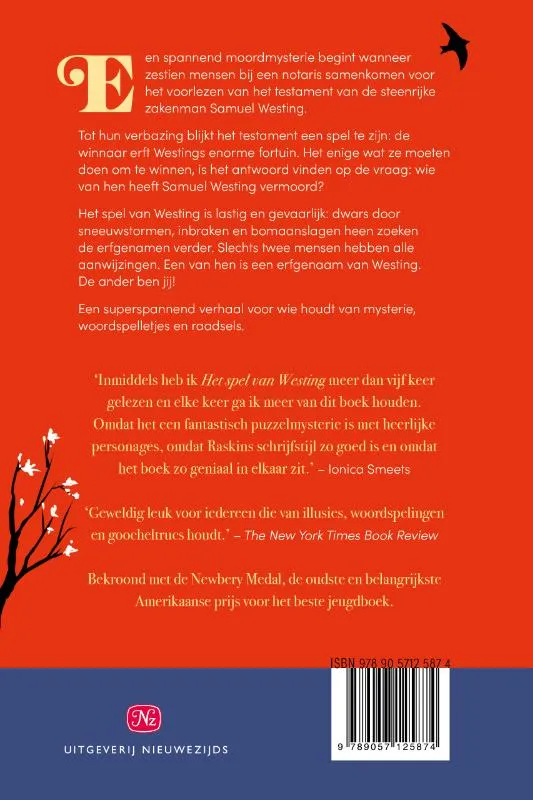 ‘Inmiddels heb ik Het spel van Westing meer dan vijf keer gelezen en elke keer ga ik meer van dit boek houden. Omdat het een fantastisch puzzelmysterie is met heerlijke personages, omdat Raskins schrijfstijl zo goed is en omdat het boek zo geniaal in elkaar zit.’ – Ionica Smeets<br><br>