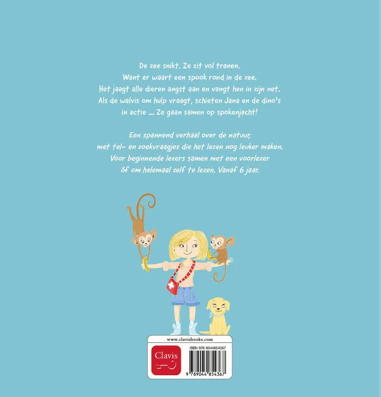 De zee snikt. Ze zit vol tranen. Want er waart een spook rond in de zee. Het jaagt alle dieren angst aan en vangt hen in zijn net. Als de walvis om hulp vraagt, schieten Jana en de dino’s in actie … Zij gaan samen op spokenjacht!