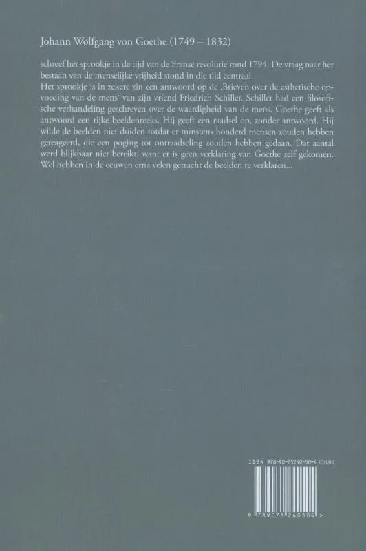 Het sprookje is in zekere zin een antwoord op de ‘Brieven over de esthetische opvoeding van de mens’ van zijn vriend Friedrich Schiller. Schiller had een filosofische verhandeling geschreven over de waardigheid van de mens. Goethe geeft als antwoord een rijke beeldenreeks. Hij geeft een raadsel op, zonder antwoord. Hij wilde de beelden niet duiden totdat er minstens 100 mensen zouden hebben gereageerd, die een poging tot ontraadseling zouden hebben gedaan. Dat aantal werd blijkbaar niet bereikt, want er is geen verklaring van Goethe zelf gekomen. Wel hebben in de eeuwen erna velen getracht de beelden te verklaren…