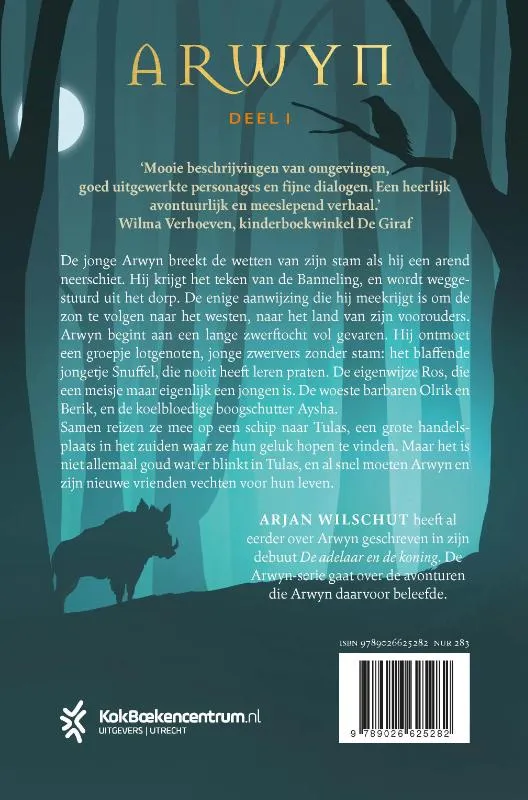 De jonge Arwyn breekt de wetten van zijn stam als hij een arend neerschiet. Hij krijgt het teken van de Banneling en wordt weggestuurd. De enige aanwijzing die hij meekrijgt is om de zon te volgen naar het westen, waar het land van zijn voorouders ligt. Arwyn begint aan een lange en gevaarlijke zwerftocht. Hij ontmoet een groepje lotgenoten, jonge zwervers zonder stam: het blaffende jongetje Snuffel, de eigenwijze Ros, de woeste barbaren Olrik en Berik en de koelbloedige boogschutter Aysha. Samen reizen ze op een schip mee naar Tulas, een grote handelsplaats in het zuiden waar ze hun geluk proberen te vinden. Er ligt een lange weg voor ze, waarop ze zullen moeten vechten voor hun leven. Een meeslepend verhaal over bijzondere vriendschappen, avontuur en heldendaden. Lees ook deel 2 van de Arwyn serie: ‘De schaduw van de Dief’.