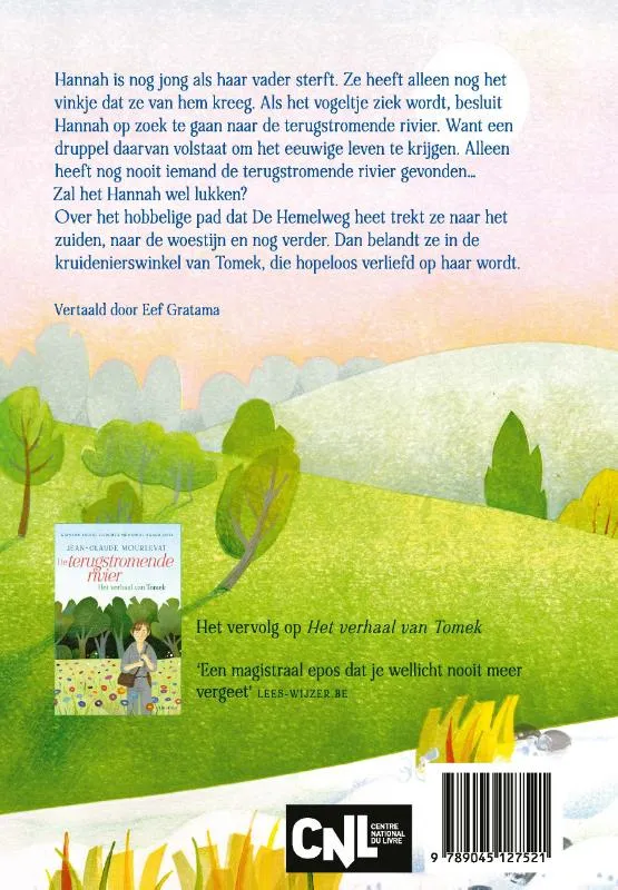 Hannah is nog jong als haar vader sterft. Ze heeft alleen nog het vinkje dat ze van hem kreeg. Als het vogeltje ziek wordt, besluit Hannah op zoek te gaan naar de terugstromende rivier. Want een druppel daarvan volstaat om het eeuwige leven te krijgen. Alleen heeft nog nooit iemand de terugstromende rivier gevonden. Langs het hobbelige pad dat De Hemelweg heet trekt ze naar het zuiden, naar de woestijn en nog verder. Ze beleeft de vreemdste avonturen nog voor ze bij de kruidenierswinkel van Tomek aankomt, die hopeloos verliefd op haar wordt.
