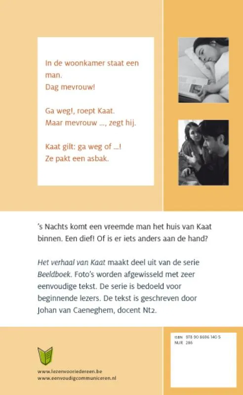 Het verhaal van Kaat maakt deel uit van de serie Beeldboek. Foto’s worden afgewisseld met zeer eenvoudige tekst. Dit boek is bedoeld voor beginnende lezers. De tekst is geschreven door Johan van Caeneghem, docent Nt2.