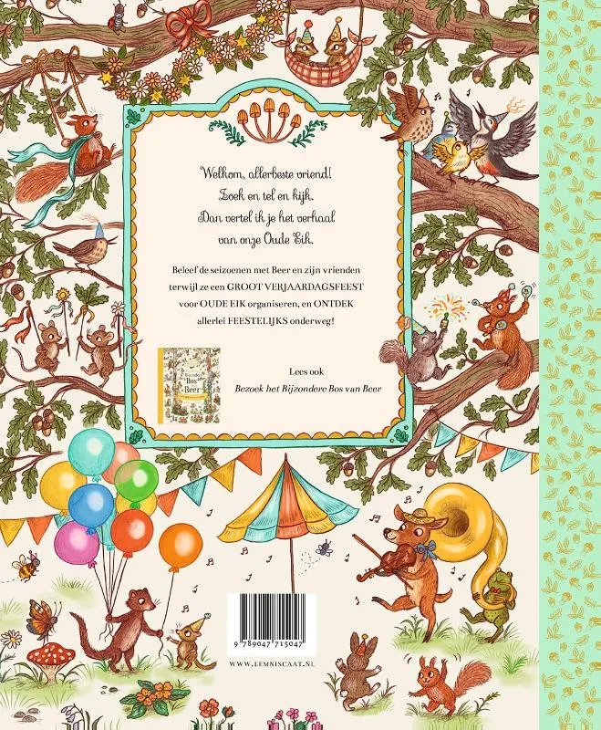 Met zijn knoestige stam, reusachtige takken en schitterende, glanzende bladeren is Oude Eik de favoriete boom van Beer in zijn Bijzondere Bos. Dus als Beer hoort dat Oude Eik vijfhonderd jaar oud is, besluit hij een verrassingsfeest te organiseren. Iedereen helpt mee.
