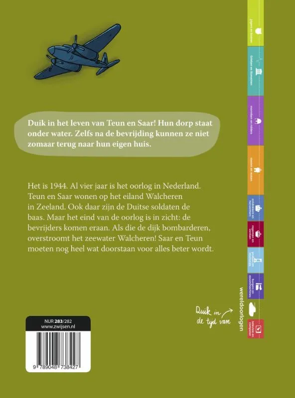 Het is 1944. Al vier jaar is het oorlog in Nederland. Teun en Saar wonen op het eiland Walcheren in Zeeland. Ook daar zijn de Duitse soldaten de baas. Maar het eind van de oorlog is in zicht: de bevrijders komen eraan. Als die de dijk bombarderen, overstroomt het zeewater Walcheren! Saar en Teun moeten nog heel wat doorstaan voor alles beter wordt.