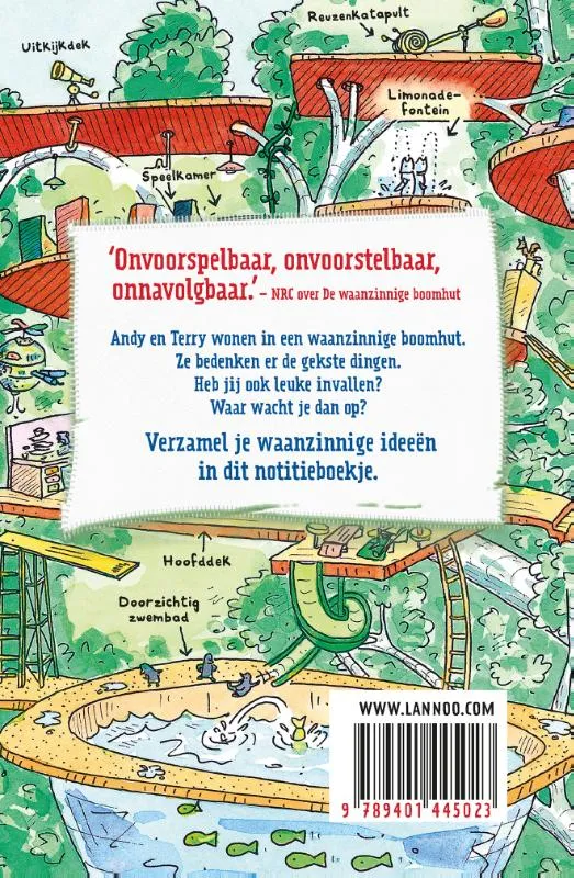 Andy en Terry wonen in een waanzinnige boomhut. Ze bedenken er de gekste dingen. Heb jij ook leuke invallen? Waar wacht je dan op? Verzamel je waanzinnige ideeën in dit notitieboekje.