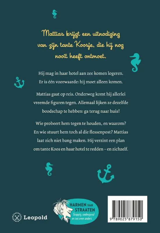 En wie stuurt hem toch al die flessenpost? Mattias laat zich niet bang maken. Hij verzint een plan om tante Koos en haar hotel te redden – en zichzelf.<br>