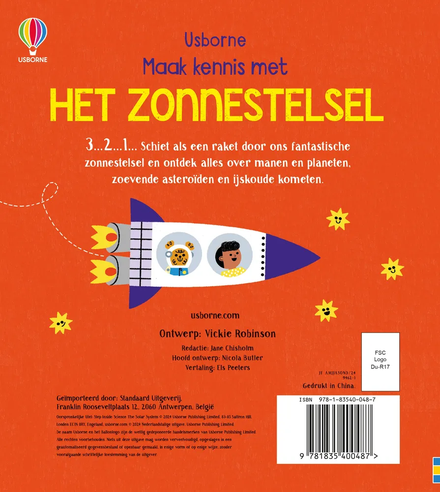 Schiet als een raket door ons fantastische zonnestelsel. Sla de bladzijden om, kijk door gaatjes en til de flapjes op om van alles te ontdekken over planeten, manen en de zon. Ga naar de rotsplaneet Mars, vlieg door een asteroïdegordel, zie een storm op Jupiter en ontdek wat er BUITEN ons zonnestelsel allemaal gebeurt.