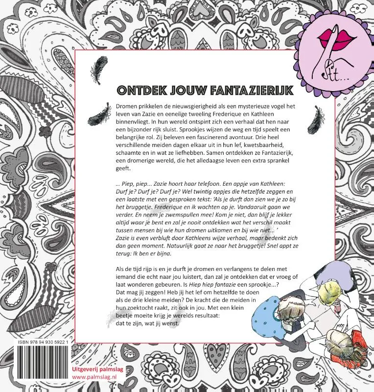Sprookjes dromen? Drie kleine meiden ontdekken onverwachts dat er meer in het leven is dan heen en weer rennen tussen school, sport en thuis. Namelijk iets heel belangrijks dat ze door het verstrijken van de tijd bijna zijn kwijtgeraakt. Een plek vol kleur, gevoel, lef, dagdromen en vooral…fantasie! Onder de vleugels van de prachtige en wijze Fantazievogel ontdekken ze Fantazierijk. Een plek buiten maar ook ín zichzelf, waar ze al hun gevoelens, dagdromen en fantasieën kwijt kunnen. Én kunnen delen. Zo leren ze niet alleen zichzelf, maar ook de grote meiden, hun moeders, dat het goed is de tijd eens stil te zetten. Want een beetje vrije vogel met dagdroomtijd gebruikt haar creativiteit en vindt gemakkelijk oplossingen voor de uitdagingen die zich in het leven voordoen. In Hiep hiep fantazie leren kleine en grote meiden dat er altijd en overal fantaztische sprookjes zijn.