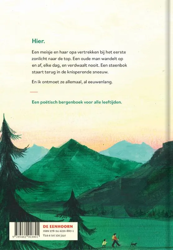 Laat je meeslepen door de eeuwenoude verhalen van een majestueuze berg in dit poëtische prentenboek voor alle leeftijden.Hier.De mooiste plek van de wereld.Kleine en grote ontmoetingen op een wirwar van paden.De belletjes-symfonie van grazende koeien klinkt elke dag anders.Een meisje vertrekt samen met haar opa bij het eerste zonlicht. Een oude man wandelt op en af, elke dag, en stuurt zijn gedachten met de wolken mee. De vrouw draagt zelfgeplukte bloemen en fruit. De stilte omringt haar terwijl ze alles neerlegt.Ik ontmoet ze allemaal, al eeuwen lang.