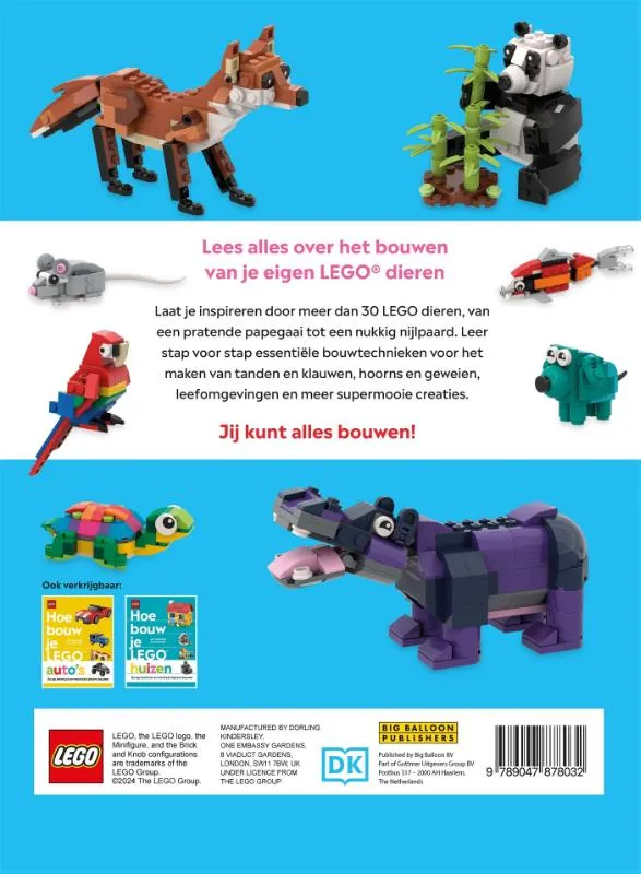 Van een brullende leeuw tot een kleurrijke papegaai of een nukkig nijlpaard: Het nieuwste LEGO®-boek: ‘Hoe bouw je LEGO® dieren’ laat zien hoe allerlei dieren met LEGO®-stenen tot leven kunnen worden gebracht. Laat je inspireren door de meer dan 30 LEGO®-dieren en leer stap voor stap essentiële bouwtechnieken voor het maken van tanden en klauwen, hoorns en geweien, leefomgevingen en meer supermooie creaties. Jij kunt alles bouwen!<br><br>Het LEGO®-avontuur begint zodra je als kind je allereerste LEGO®-steentje vastpakt. Met de vrolijk gekleurde bouwstenen kunnen zowel kinderen als volwassenen een eigen wereld creëren. Of je een eigen stad wilt bouwen, de snelste voertuigen of de mooiste gebouwen, met LEGO® kan het allemaal. Dit creatieve en duurzame speelgoed is niet meer weg te denken!<br><br>Bekijk ook de andere boeken in de Hoe bouw je-reeks: ‘Hoe bouw je LEGO® huizen’ en ‘Hoe bouw je LEGO® auto’s’.<br>Nóg meer praktische bouwadviezen van ervaren LEGO®-bouwers, dat betekent kleurrijke avonturen en creatief plezier voor alle fans.