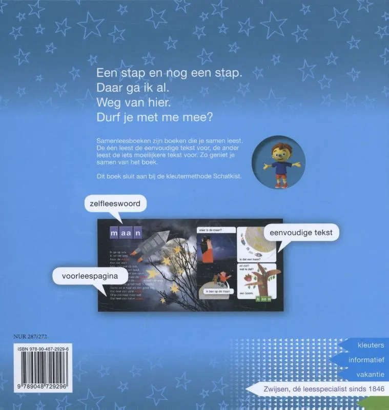 Kleuters samenleesboeken zijn boeken die je samen leest. De één leest de eenvoudige tekst voor, de ander leest de iets moeilijkere tekst voor. Zo geniet je samen van het boek.