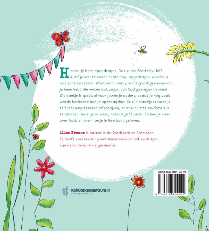 Het opdragen van je kindje is een feestelijk en bijzonder moment vol zegen van God. In ‘Hoera, je bent opgedragen!’ schrijft Alice Kremer over het opdragen van kinderen en hoe dit bijzondere moment een dagelijks terugkerende zegen mag worden. Elk levensjaar, van 0 tot 12, wordt stilgestaan bij het opdragen, met een zegen, een gebed, een opdracht en een korte Bijbelstudie. Met veel ruimte om foto’s in te plakken en herinneringen in te vullen, waardoor dit prachtige boekje een mooi bewaaralbum en een herinneringsboek wordt voor later.