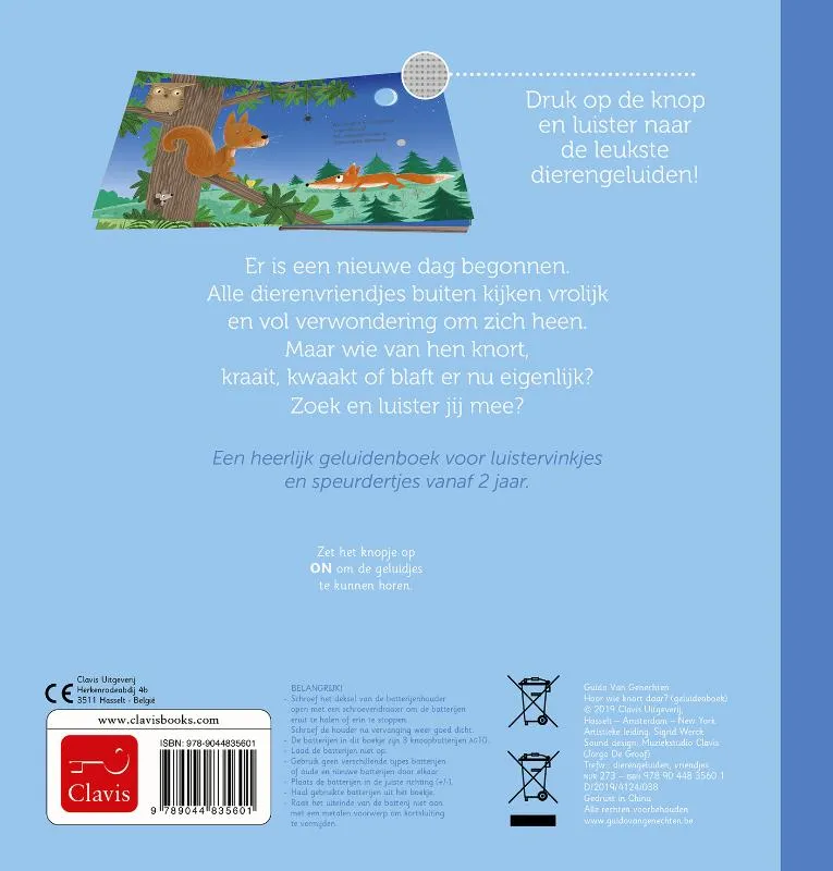 Hé, hoor jij dat ook? Een dierengeluid! Was het een varken? Of een muisje misschien? Of was het de kikker in de vijver? Kijk en luister op elke bladzijde mee welk diertje er koerde, knorde of kwaakte.