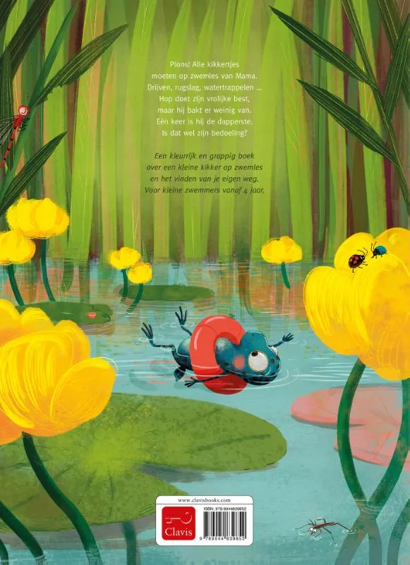 Een kleurrijk en grappig boek over een kleine kikker op zwemles en het vinden van je eigen weg. Voor kleine zwemmers vanaf 4 jaar.