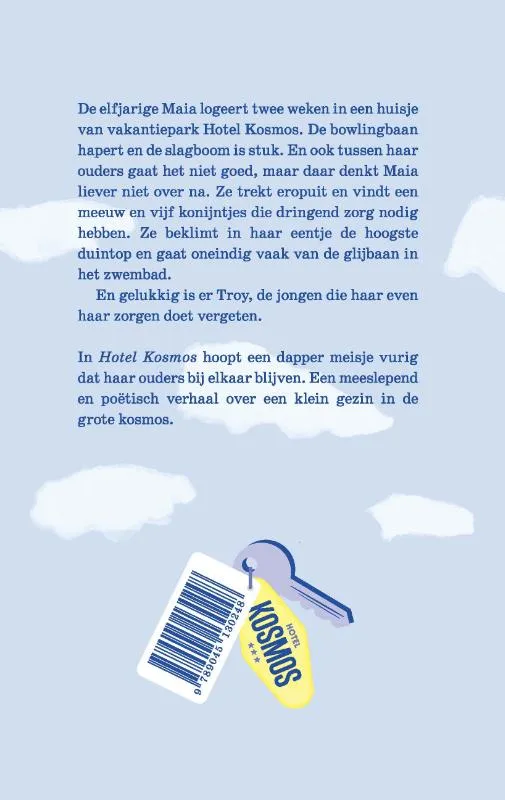 In Hotel Kosmos hoopt een dapper meisje vurig dat haar ouders bij elkaar blijven. Een meeslepend en poëtisch verhaal over een klein gezin in de grote kosmos.
