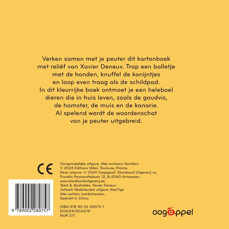Verken samen met je peuter dit kartonboek met reliëf van Xavier Deneux. Trap een balletje met de honden, knuffel de konijntjes en loop even traag als de schildpad.