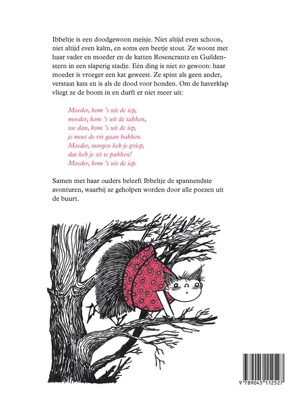 Ibbeltje is een doodgewoon meisje. Niet altijd even schoon, niet altijd even kalm, en soms een beetje stout. Ze woont met haar vader en moeder en de katten Rosencrantz en Guildenstern in een slaperig stadje. Eén ding is niet zo gewoon: haar moeder is vroeger een kat geweest. Ze spint als geen ander, verstaat kats en is als de dood voor honden. Om de haverklap vliegt ze de boom in en durft er niet meer uit:
