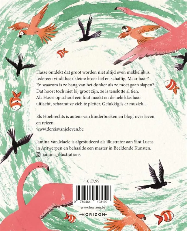 Hasse ontdekt dat groot worden niet altijd even makkelijk is. Iedereen vindt haar kleine broer lief en schattig. Maar haar? En waarom is ze bang van het donker als ze moet gaan slapen? Dat hoort toch niet bij groot zijn, ze is tenslotte al tien.<br>Als Hasse op school een fout maakt en de hele klas haar uitlacht, schaamt ze zich te pletter. Gelukkig is er muziek…<br>In een herkenbaar verhaal en met prachtige illustraties schetsen Els Hoebrechts en Jamina Van Maele de overgang van kind naar puber, van een nog magische wereld naar de realiteit van alledag.