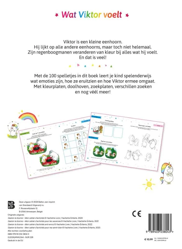 Met de 100 spelletjes in dit boek leert je kind spelenderwijs wat emoties zijn, hoe ze eruitzien en hoe Viktor ermee omgaat. Met kleurplaten, doolhoven, zoekplaten, verschillen zoeken en nog véél meer!