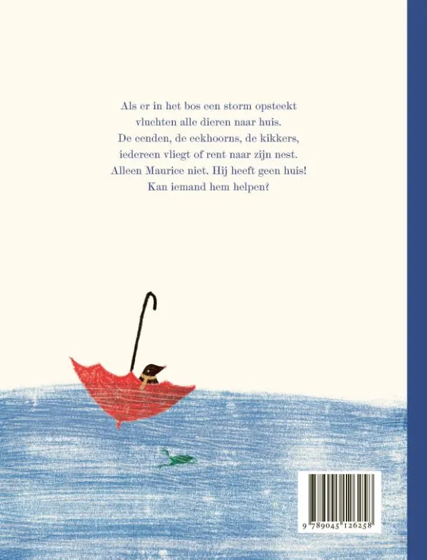 Als het in het bos begint te regenen, te waaien en ten slotte hard te stormen vluchten alle dieren naar huis. De eenden, de eekhoorns, de kikkers… iedereen vliegt of rent naar zijn nest. Alleen Maurice niet. Hij heeft geen huis! Hij is veel te groot, er is geen plaats voor hem. Helemaal alleen raakt hij verloren in de storm. Maar gelukkig is er Mol. Die heeft van de wind diep onder de grond geen last. Maar de tranen van Maurice hoort hij wel…